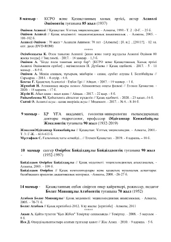 Сығай Ә. Асанәлі асуы - қазақ өнерінің асуы // Мәдениет. - 2017. - № 6. - 8-16 б.