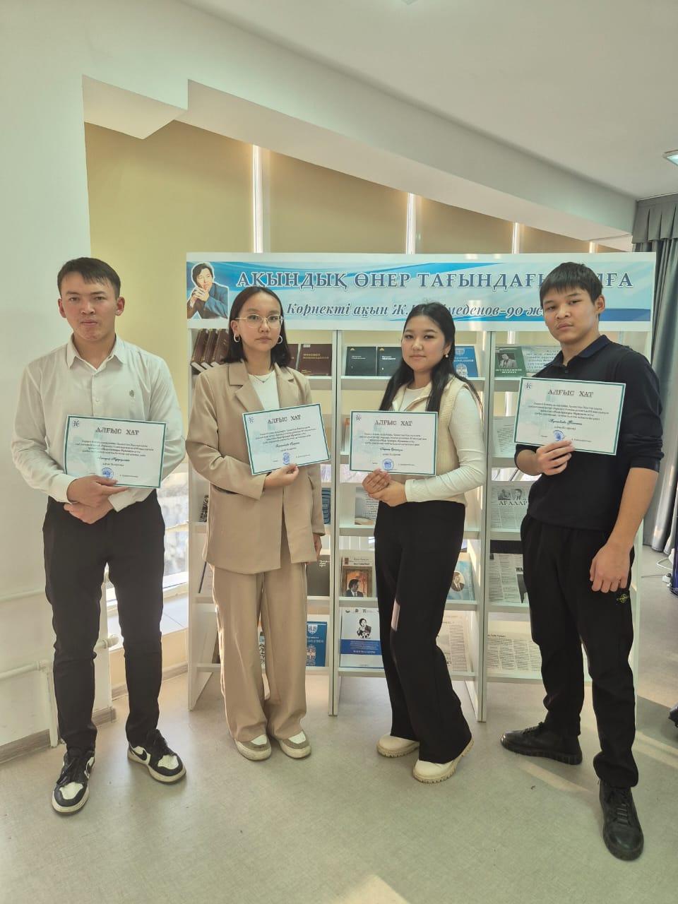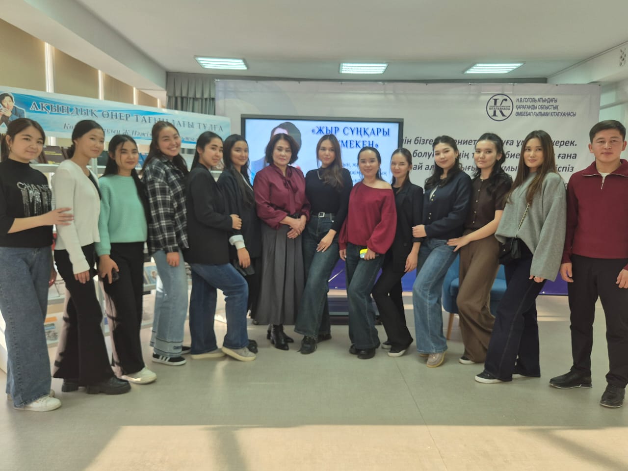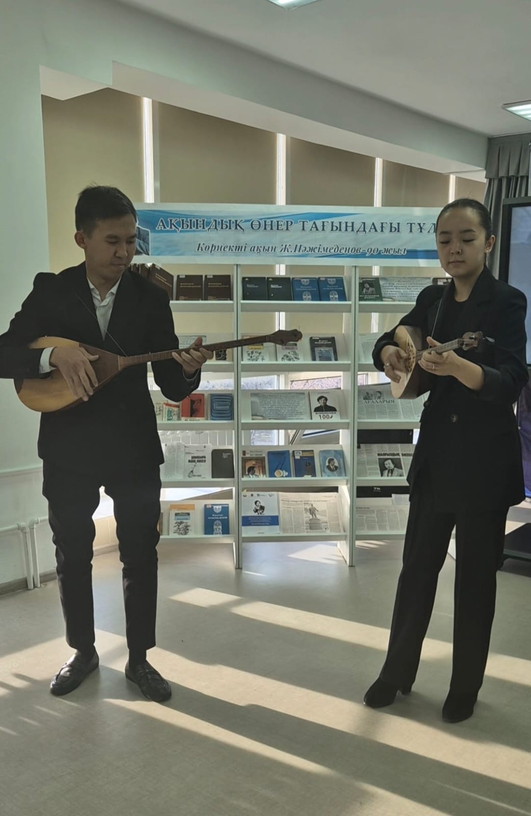 Кроме того, вниманию посетителей была представлена книжная выставка «Ақындық өнер тағындағы тұлға». Количество участников: 95 человек.
