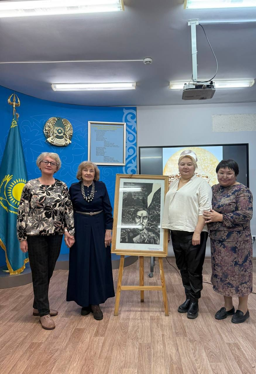Научный сотрудник Карагандинского областного музея изобразительного искусства А.С. Омарова представила линогравюру художника Т.П. Кенесбаева «Портрет Шокана Уалиханова», продемонстрировав уникальные художественные особенности работы.